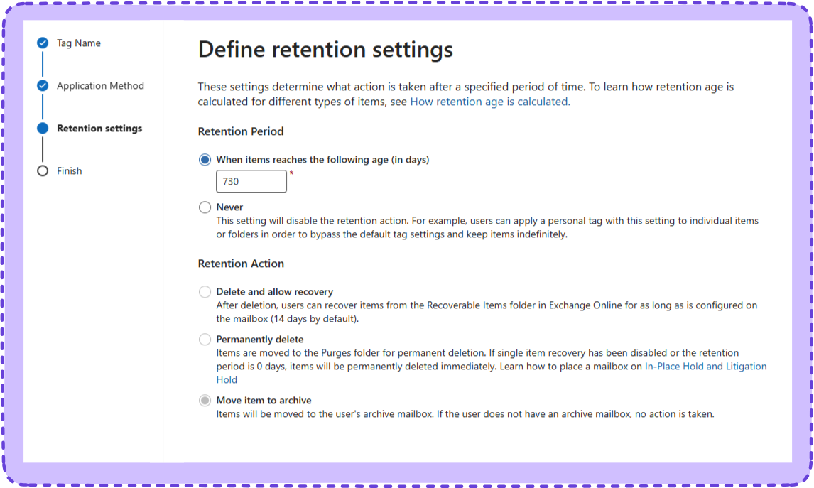 Something I’ve had to do a bit more of lately, messing around with retention periods in Purview, specifically in regards to In-Place Archive.