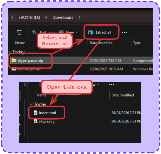 Click that link, expand the first option (Export or Delete etc etc) and scroll down to ‘To Extract the .tar’. In part 5 of that section the word ‘Viewer’ is blue, clicking it will download the tool. You can also just click that word here because I got your back.