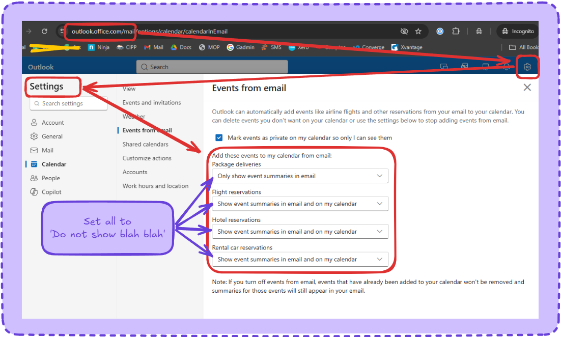 Turning off “Events from Email”