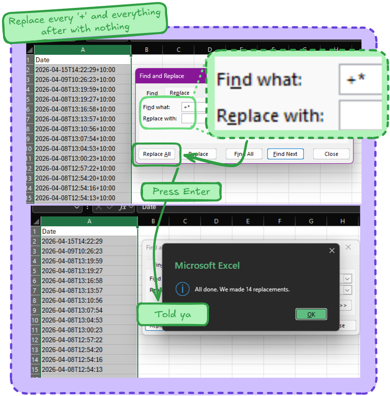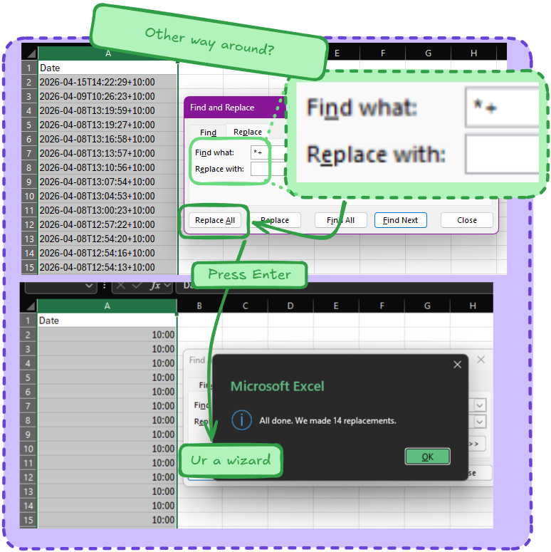 - To delete a substring between two characters, type an asterisk surrounded by 2 characters