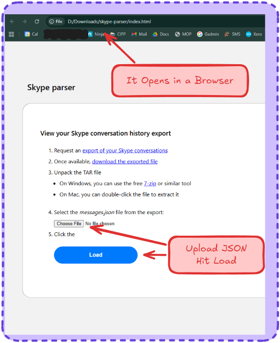 Click that link, expand the first option (Export or Delete etc etc) and scroll down to ‘To Extract the .tar’. In part 5 of that section the word ‘Viewer’ is blue, clicking it will download the tool. You can also just click that word here because I got your back.